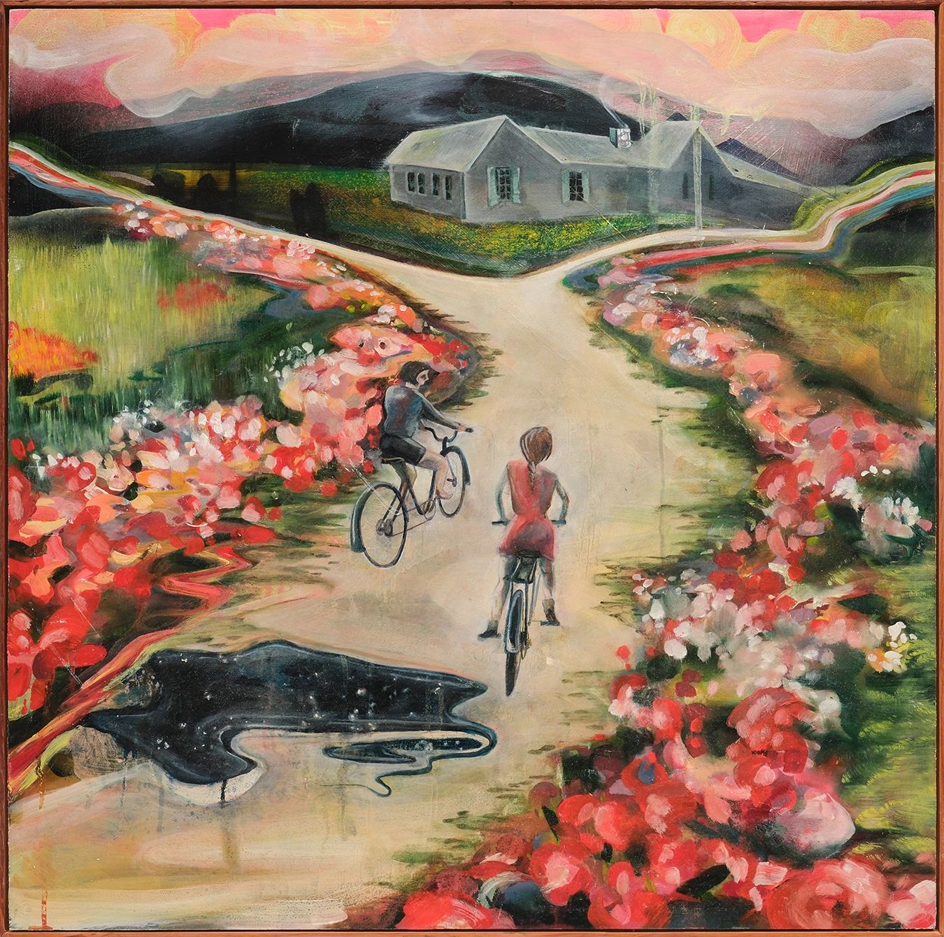 ALLISON DAWN JOHNSON, TWO PATHS, 2023, MIXED MEDIA ON WOODEN PANEL, 25 X 25”