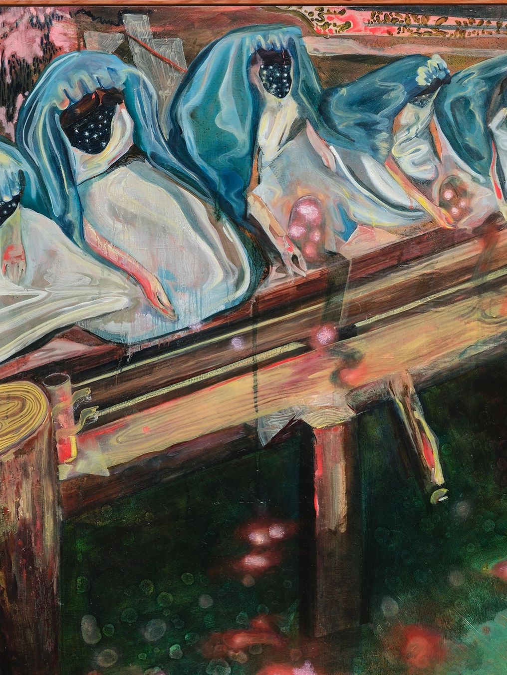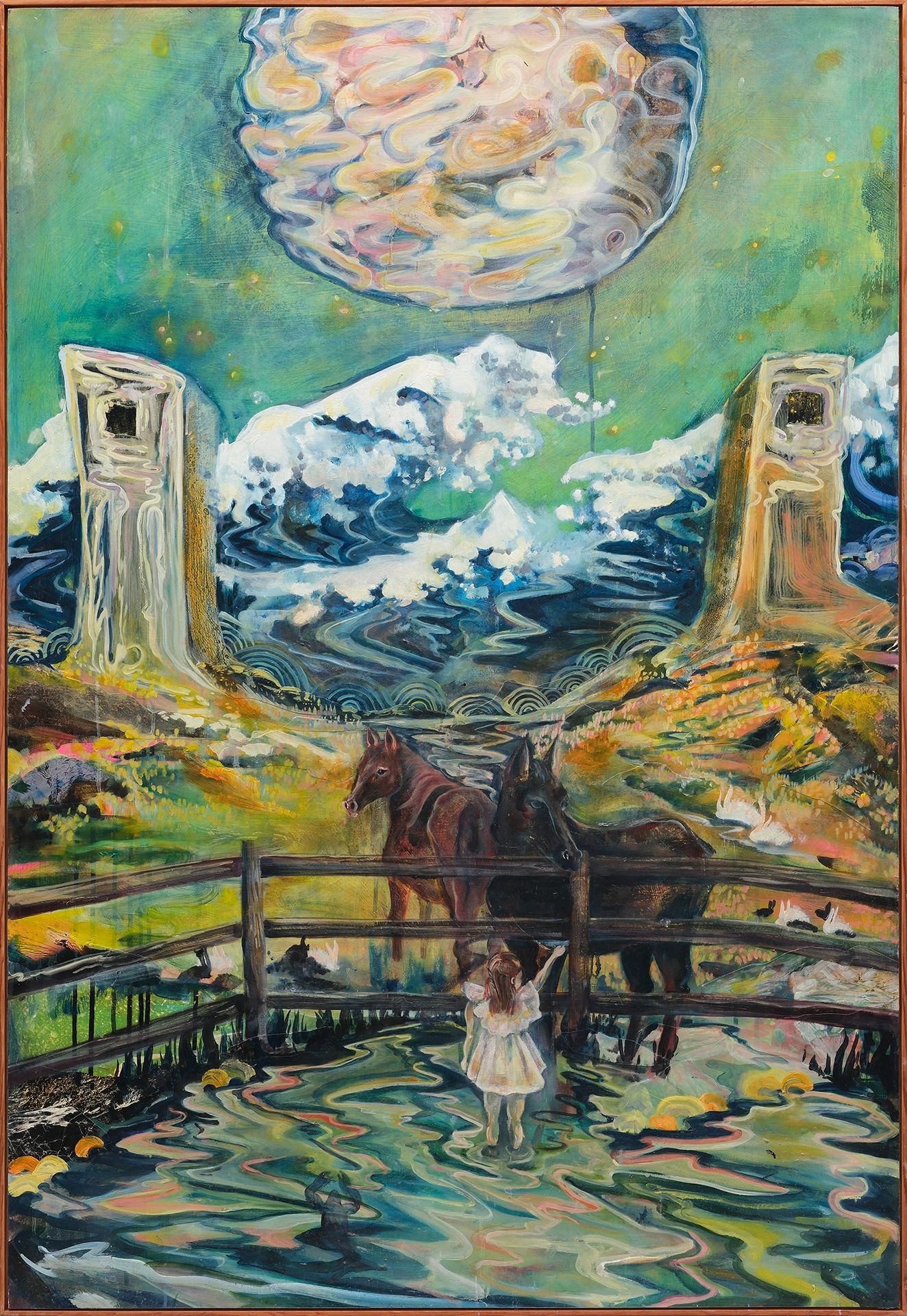 ALLISON DAWN JOHNSON, REMEMBER THE MOON, KNOW WHO SHE IS, 2023, OIL AND WOODEN PANEL, 36 X 48”