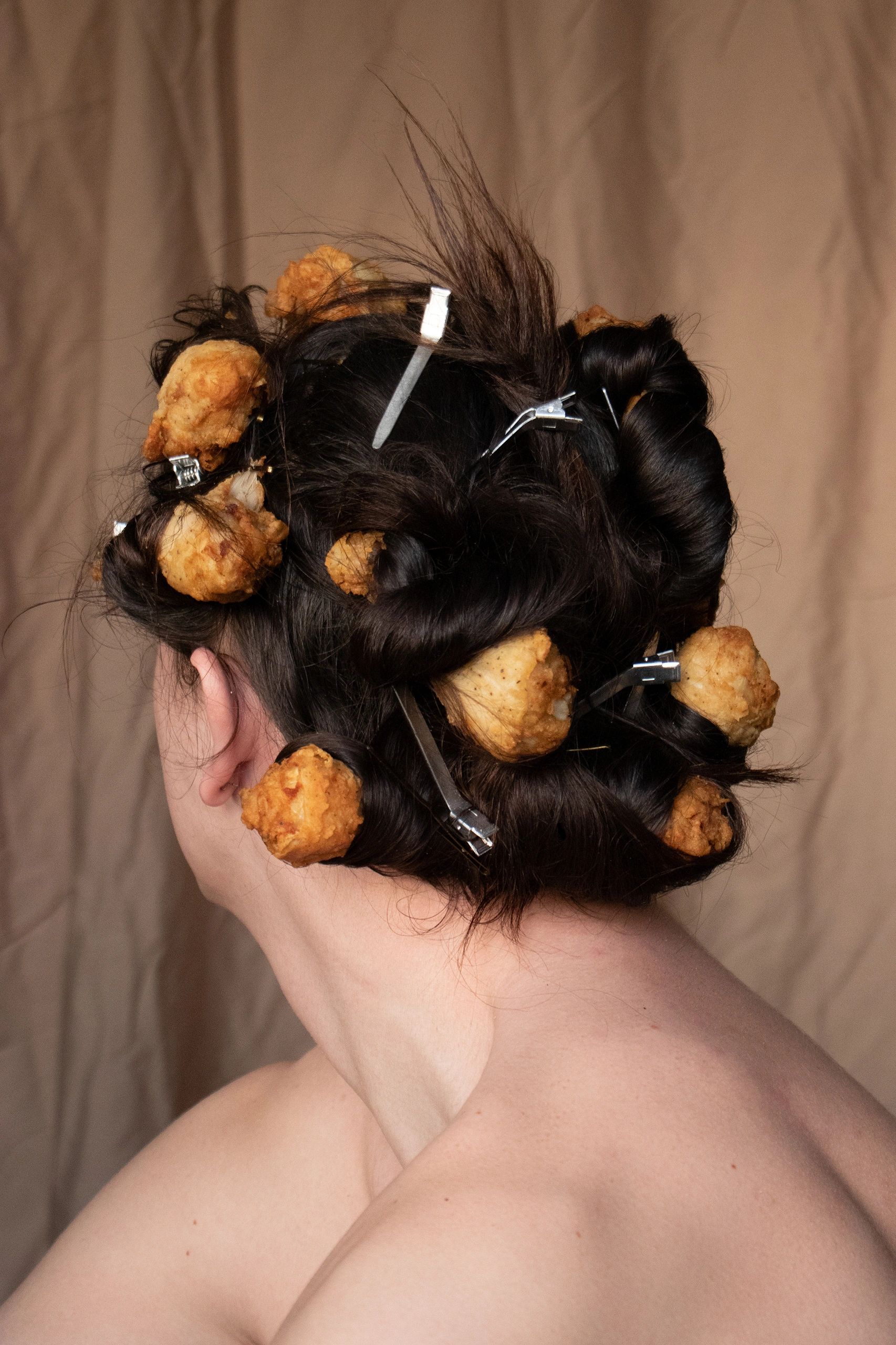 Telephone Gallery is pleased to showcase its fourth exhibition with artist Jake Kimble presented by Maria-Margaretta. Break A Leg reveals labours of self-love and radical acts of care. Using the body as a site of ritual, Jake Kimble pieces himself together, presenting a staged version of his reality. Engaging with the conscious performativity of the everyday; Jake refuses to be consumed through this playful engagement with expectation.